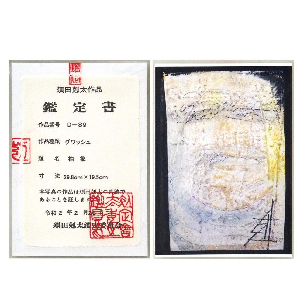 「抽象」須田剋太によるグワッシュ3号です。須田剋太鑑定委員会の鑑定書が有り、飾りやすいサイズの作品です。