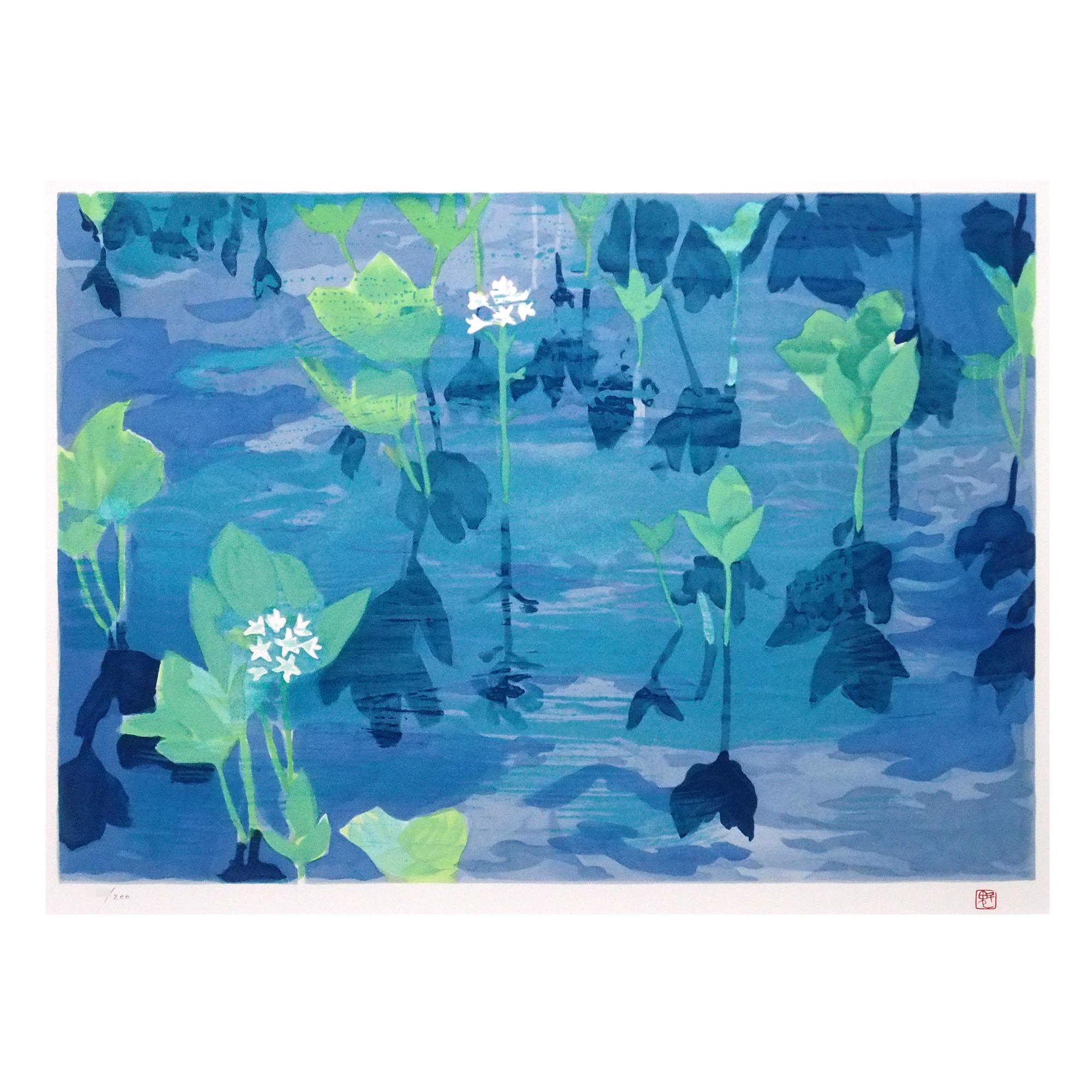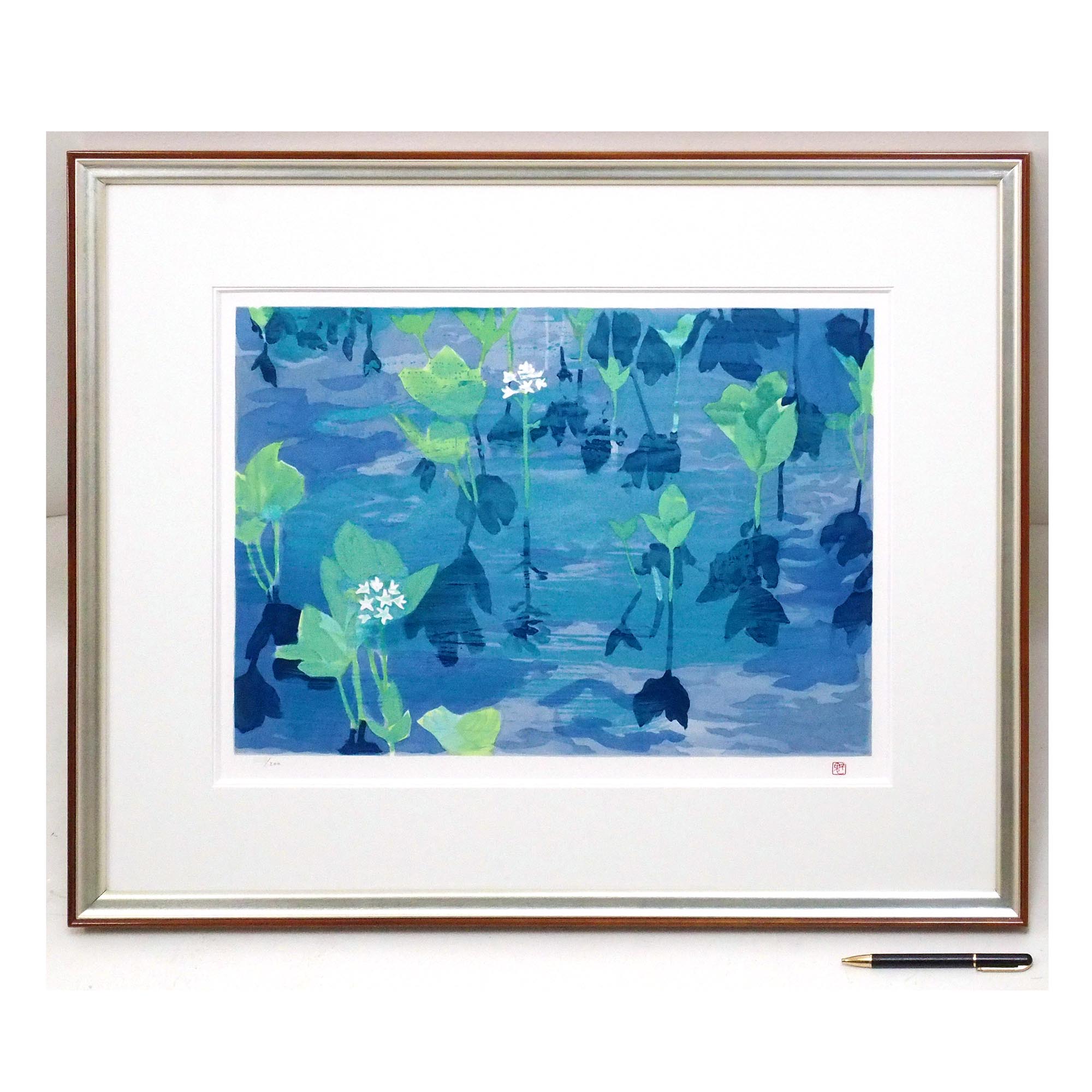 「沼」東山魁夷による1989年制作、「魁」の朱文方印入りのリトグラフです。