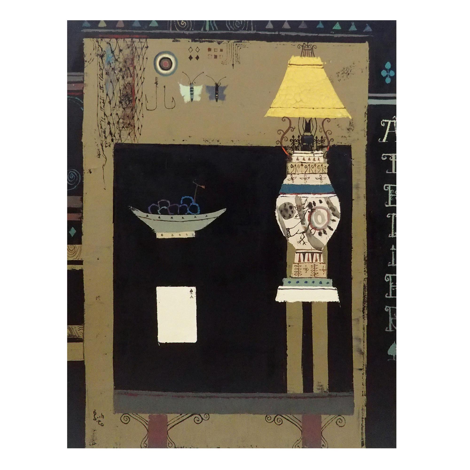 「ランプとカード」早川義孝によるキャンバスに油彩15号です。