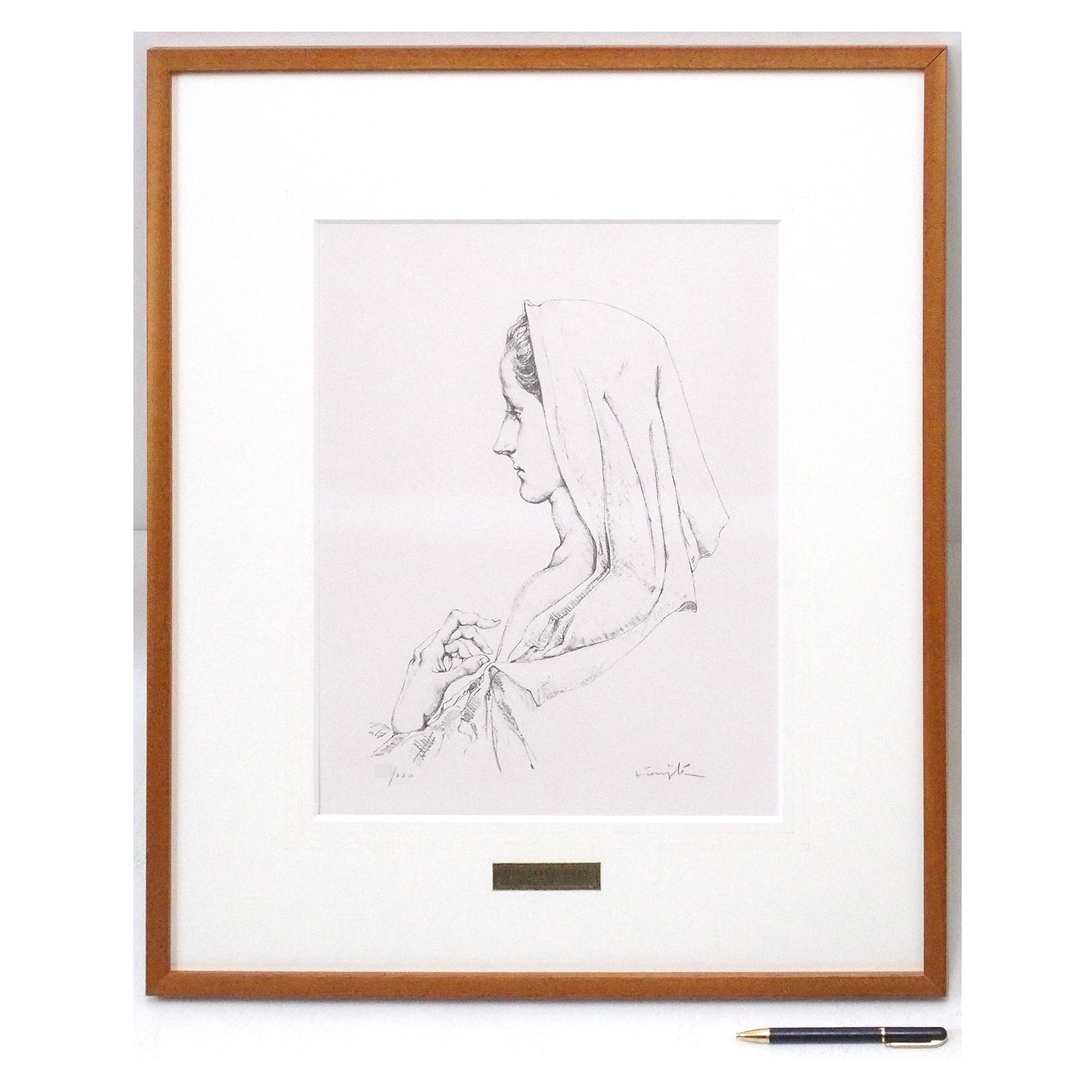 「聖母の横顔」藤田嗣治による直筆サイン入りのリトグラフです。