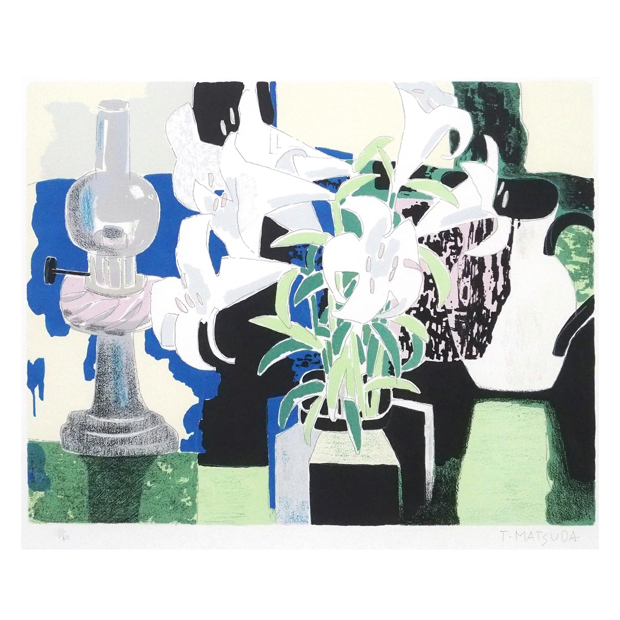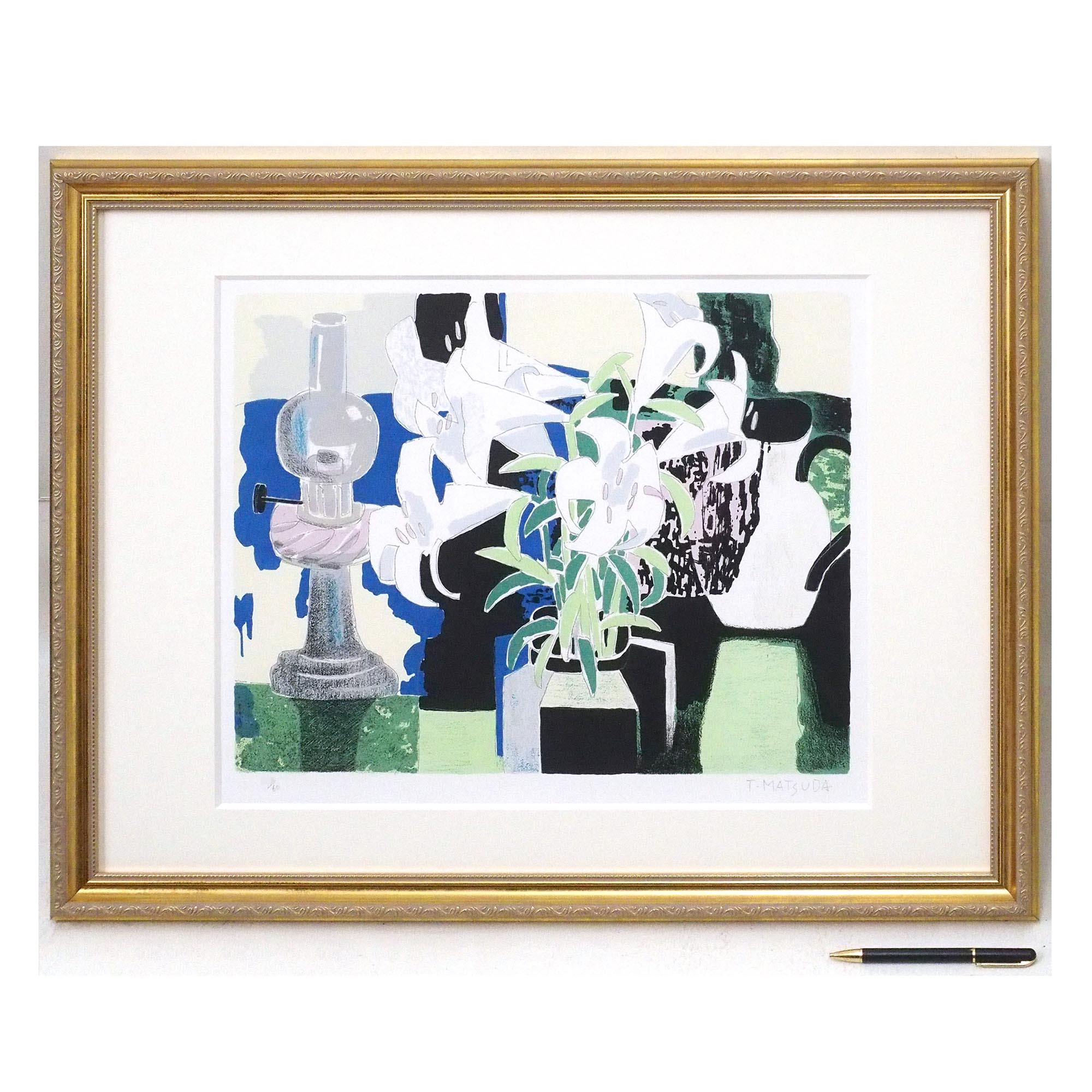 「窓辺の花 ユリ」松田環による直筆サイン入りのリトグラフです。