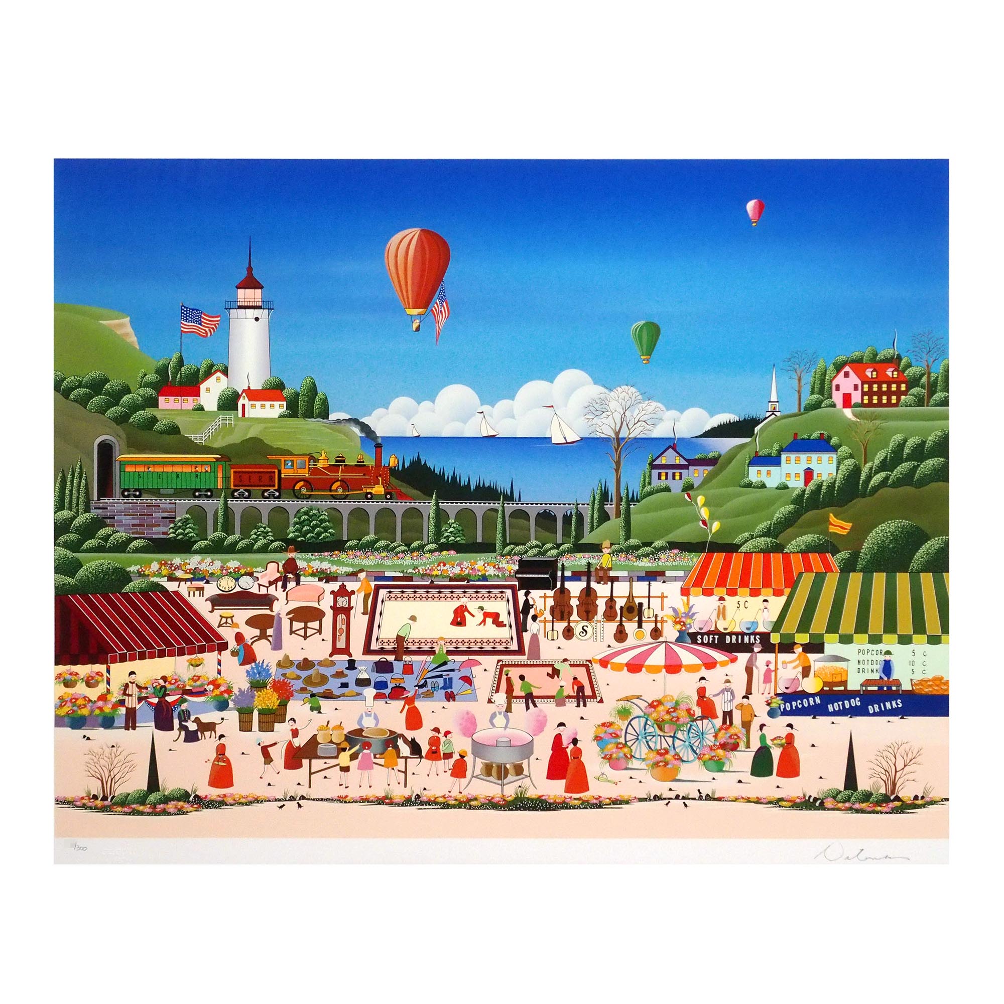 「蚤の市」渡辺信雄(ニッキー・ワタナベ)による直筆サイン入りのセリグラフです。