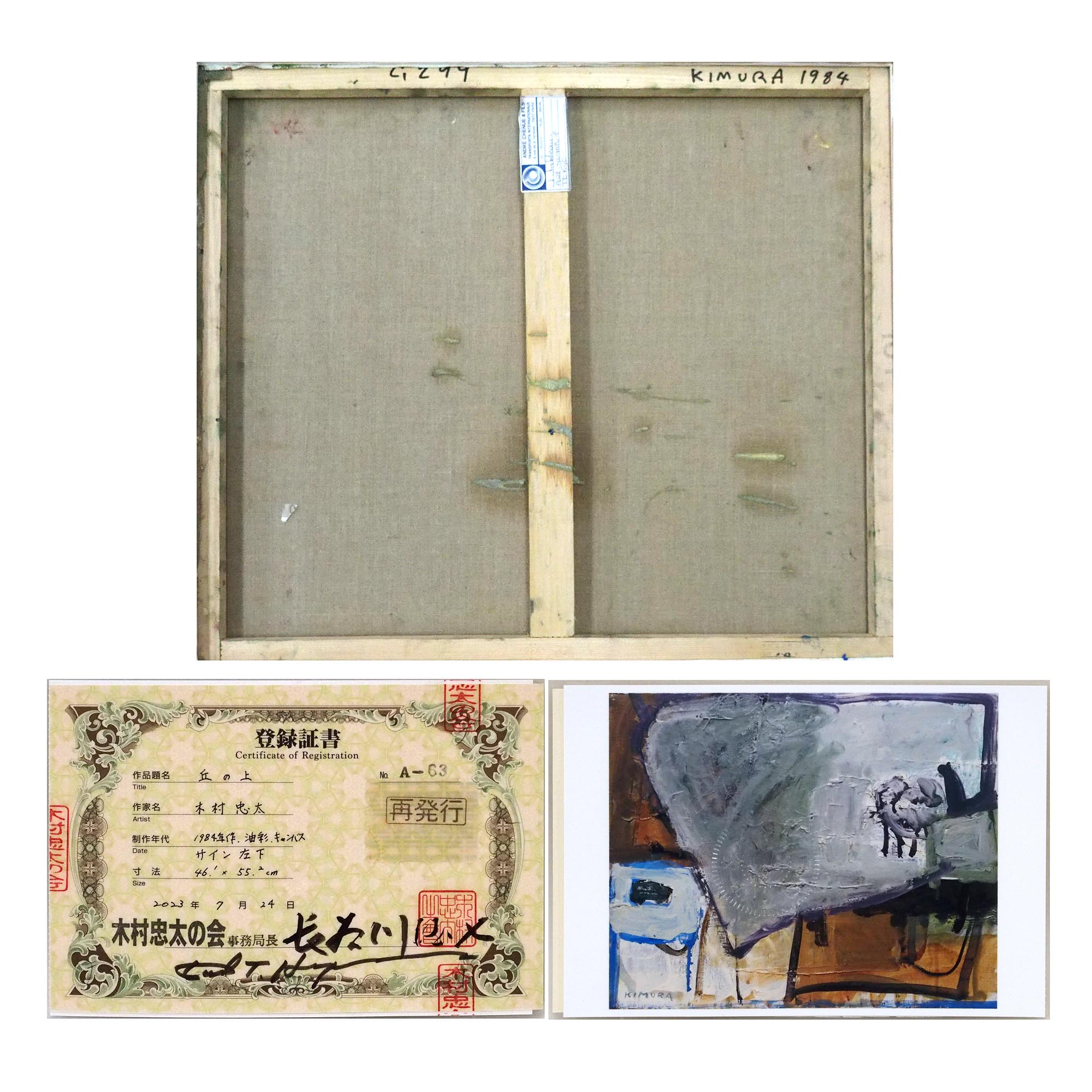 「丘の上」木村忠太による1984年作のキャンバスに油彩10号で、木村忠太の会の登録証書がございます。