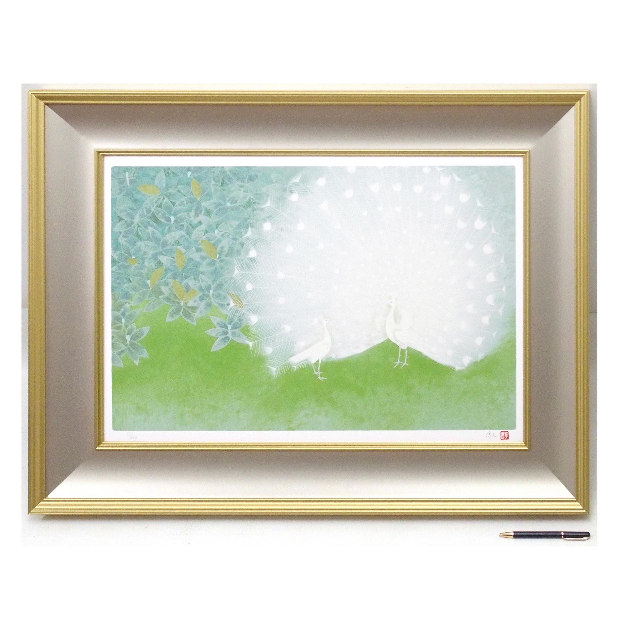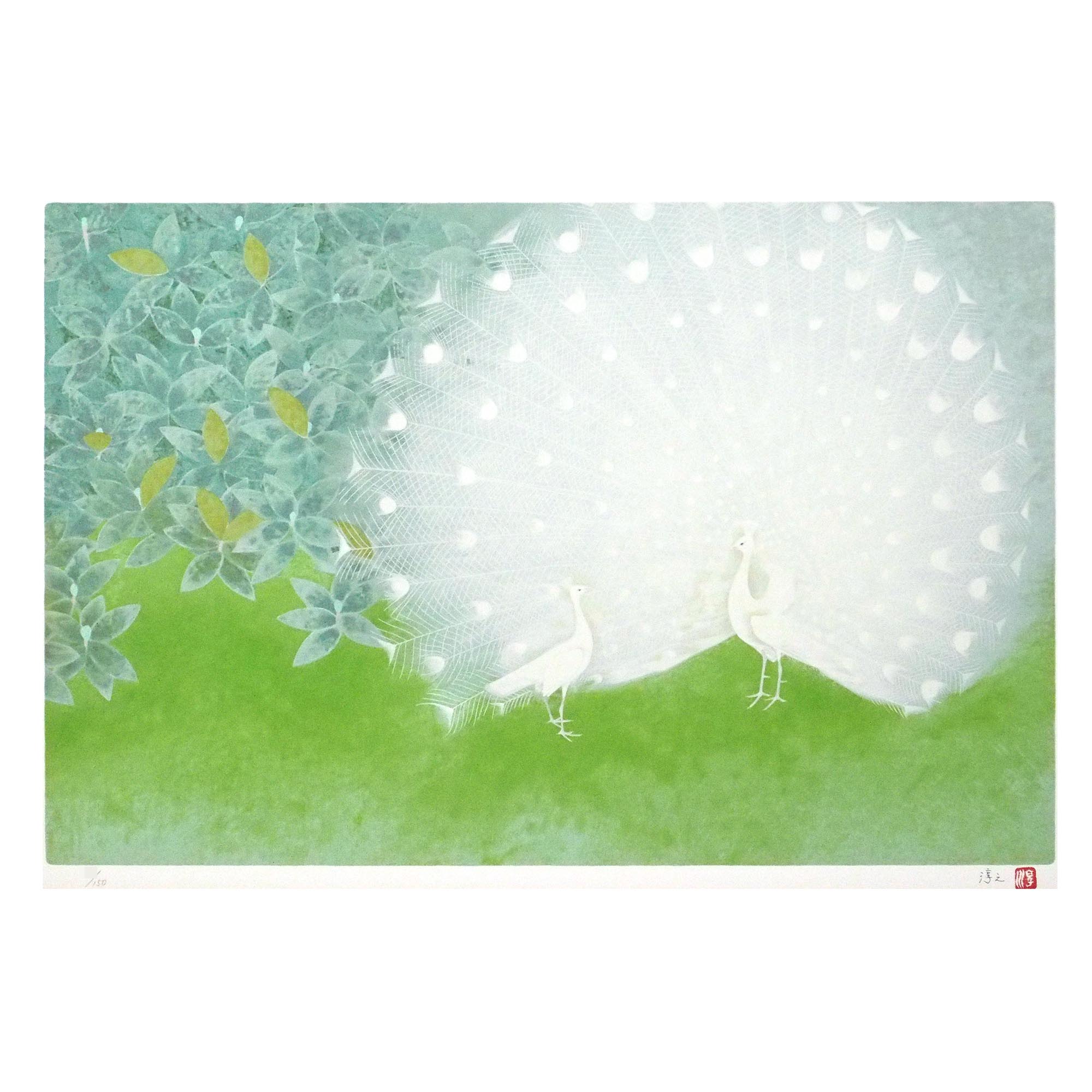 「白孔雀」上村淳之による直筆サイン・印有りのシルクスクリーンです。