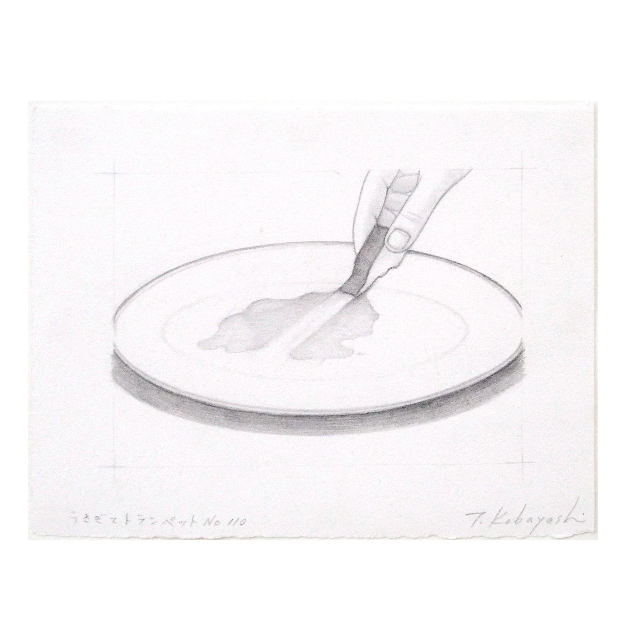 「うさぎとトランペット No.110」小林孝亘による2003年作の紙に鉛筆、水彩0号です。