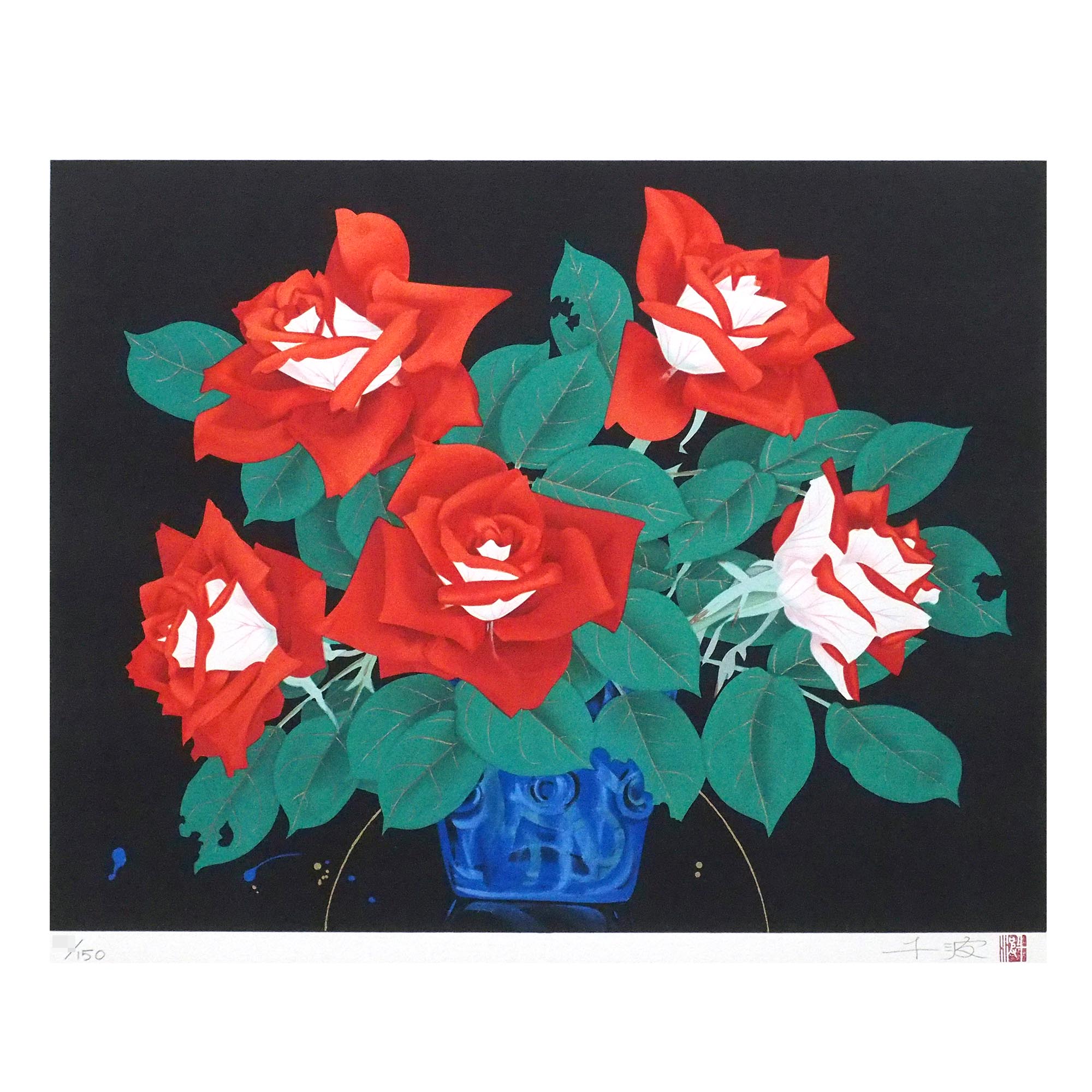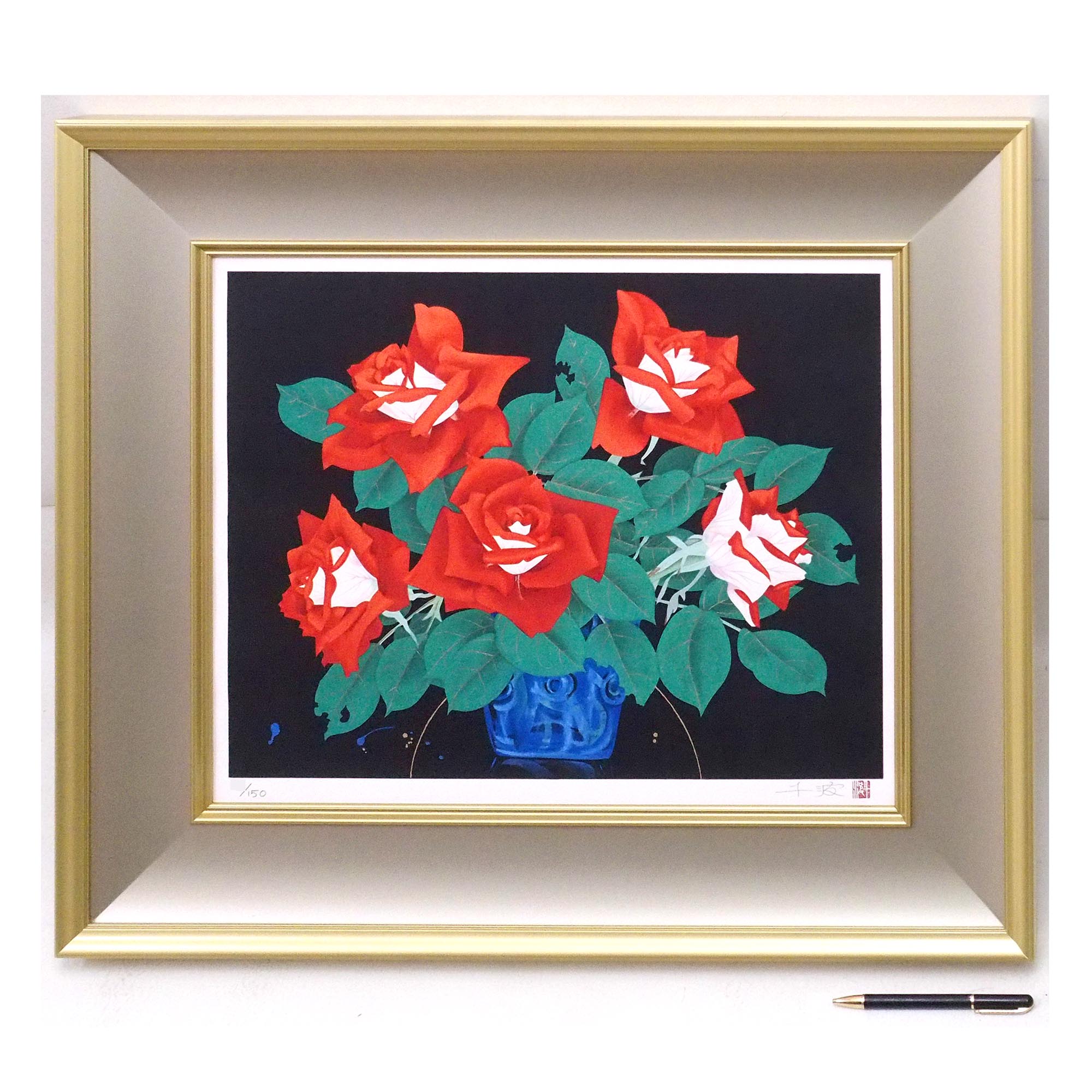 「ばら」中島千波による直筆サイン・印有りのリトグラフです。