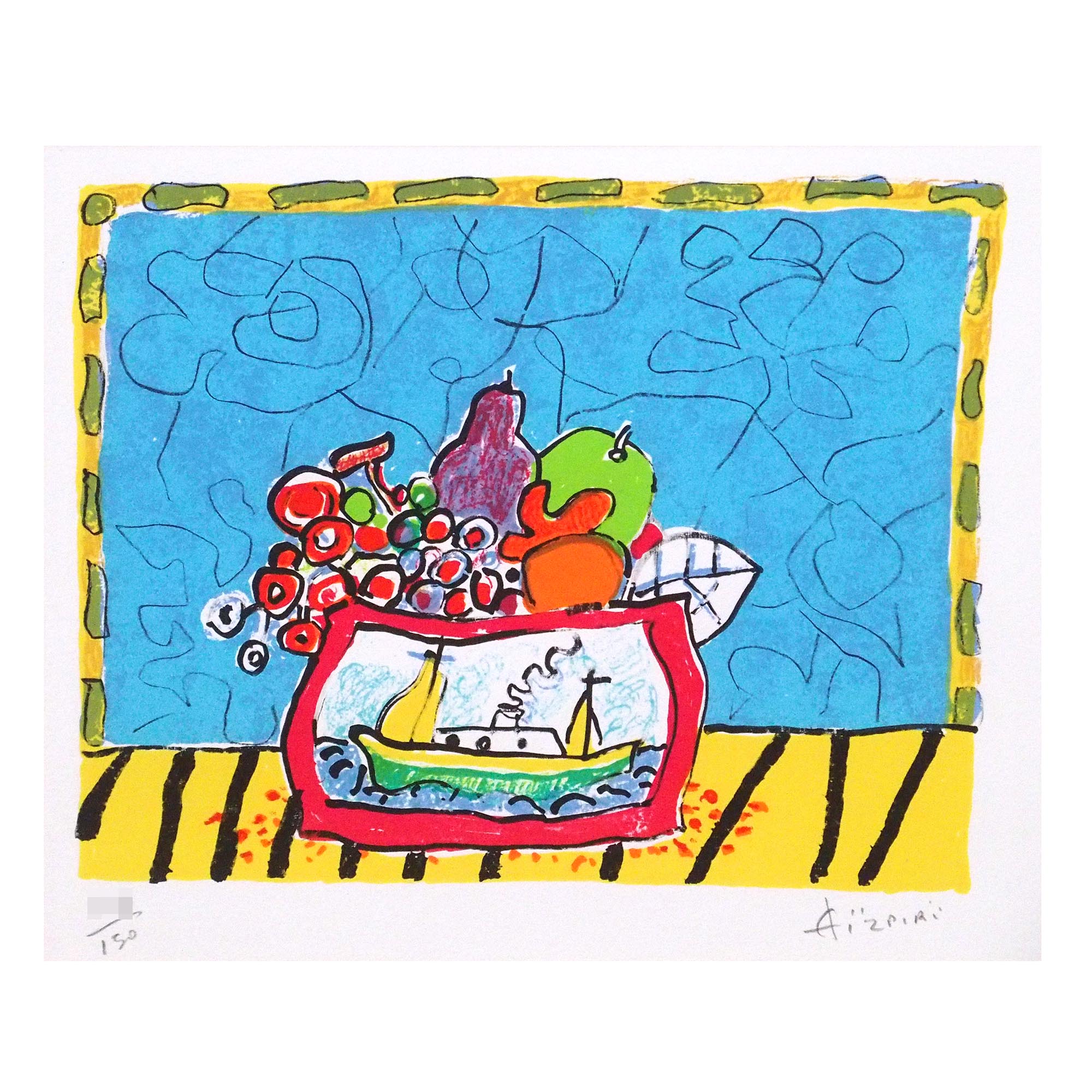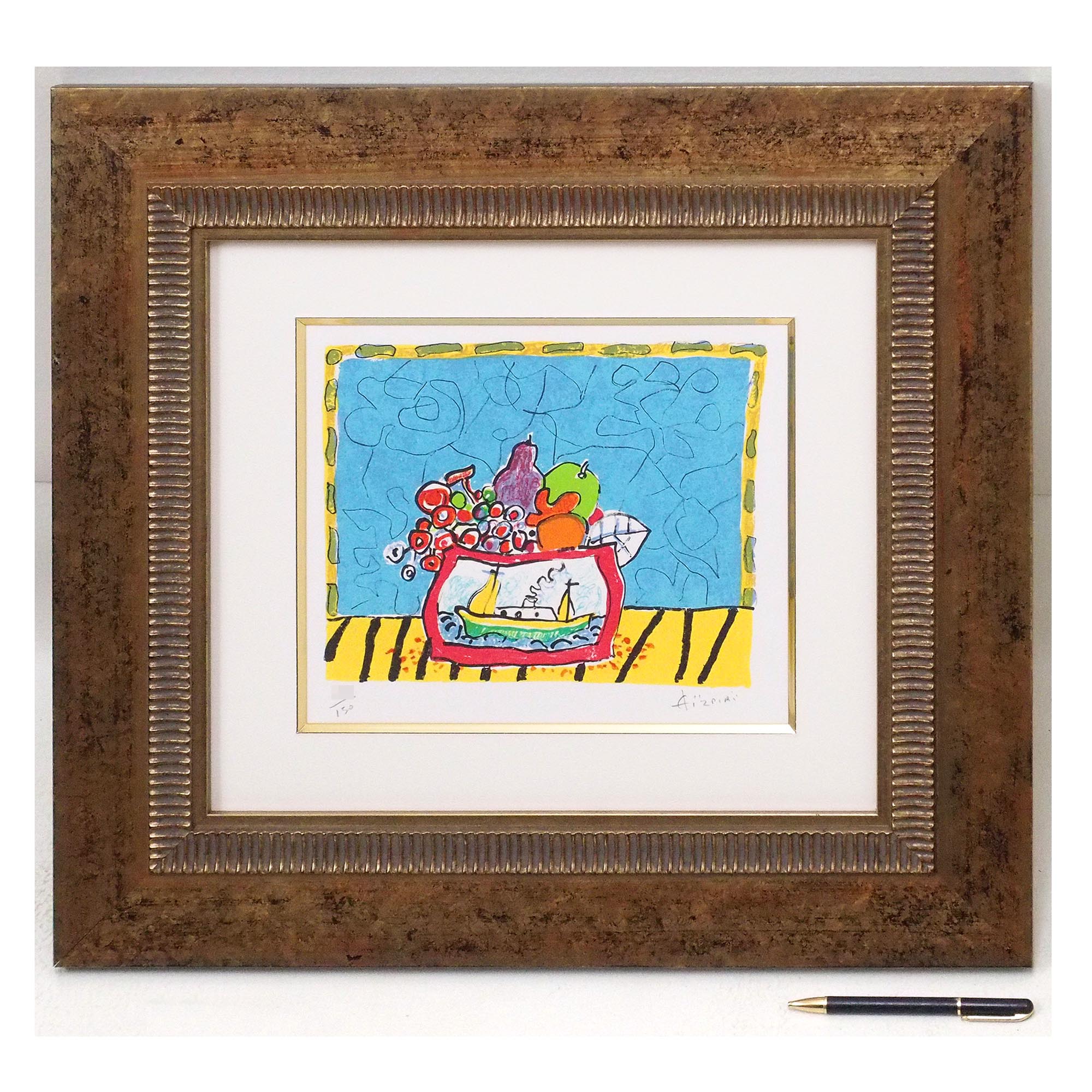 「ブルーバックの静物」ポール・アイズピリによる直筆サイン入りのリトグラフです。