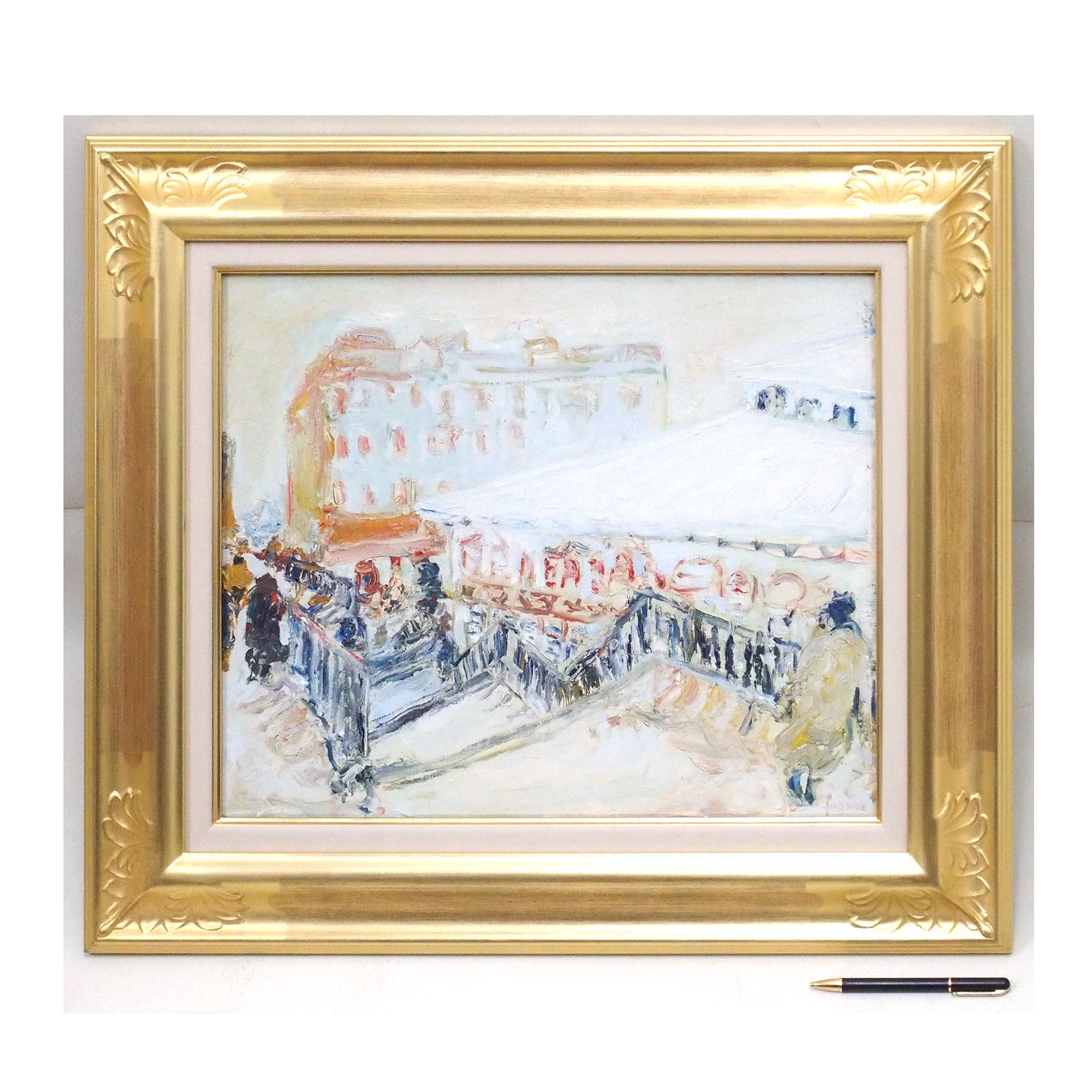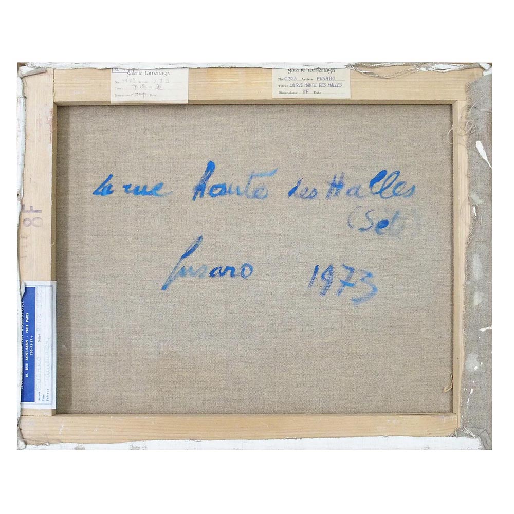 「市場への道」ジャン・フサロによる1973年作のキャンバスに油彩8号で、裏にギャラリーためながの取扱いシールがございます。