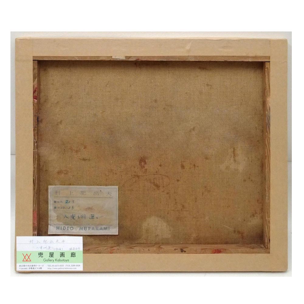 「八重洲通り」村上肥出夫による1962年作、キャンバスに油彩8号で、裏に兜屋画廊シールがございます。