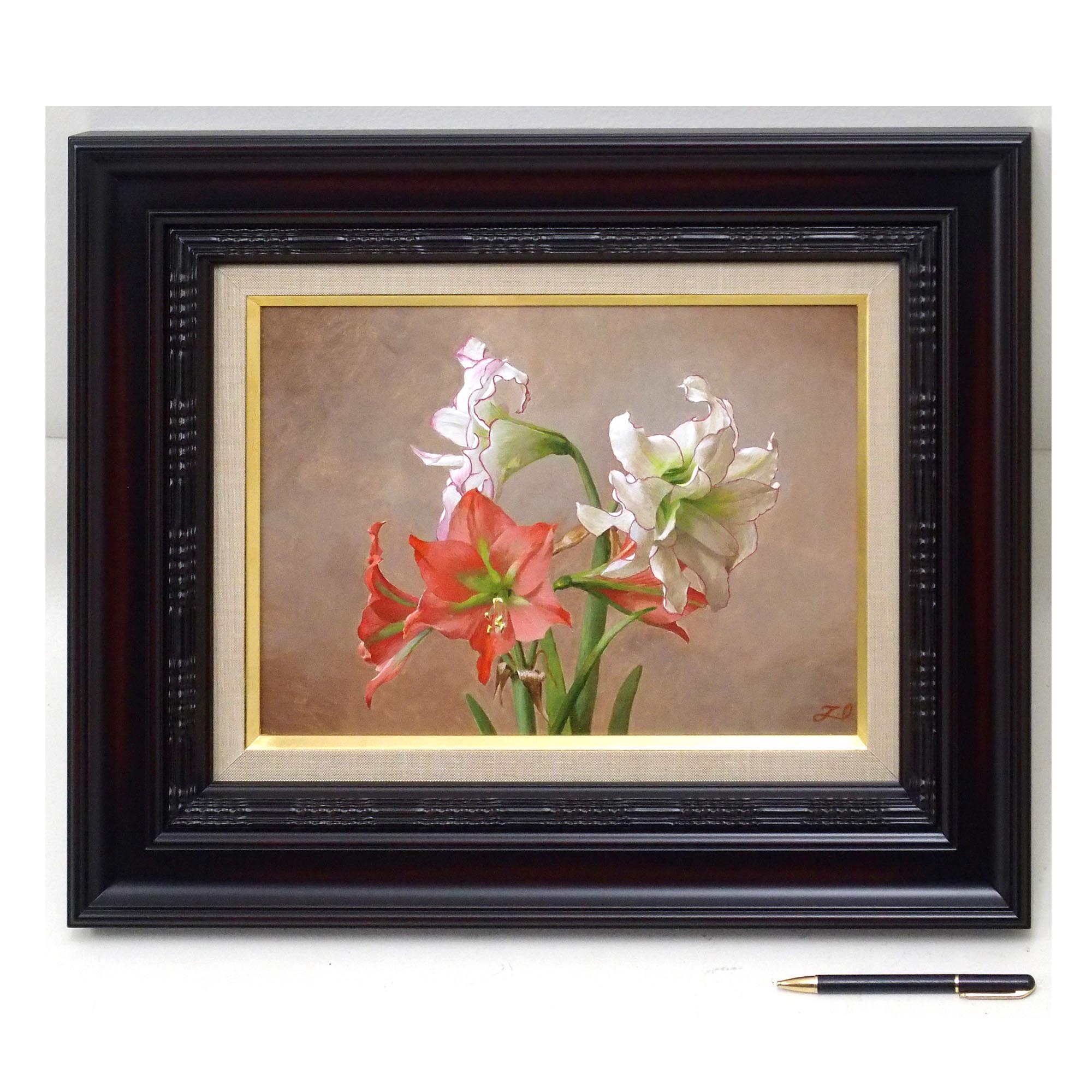 「アマリリス」岩戸敏彦によるボードにアクリル4号で、日動画廊シールがございます。